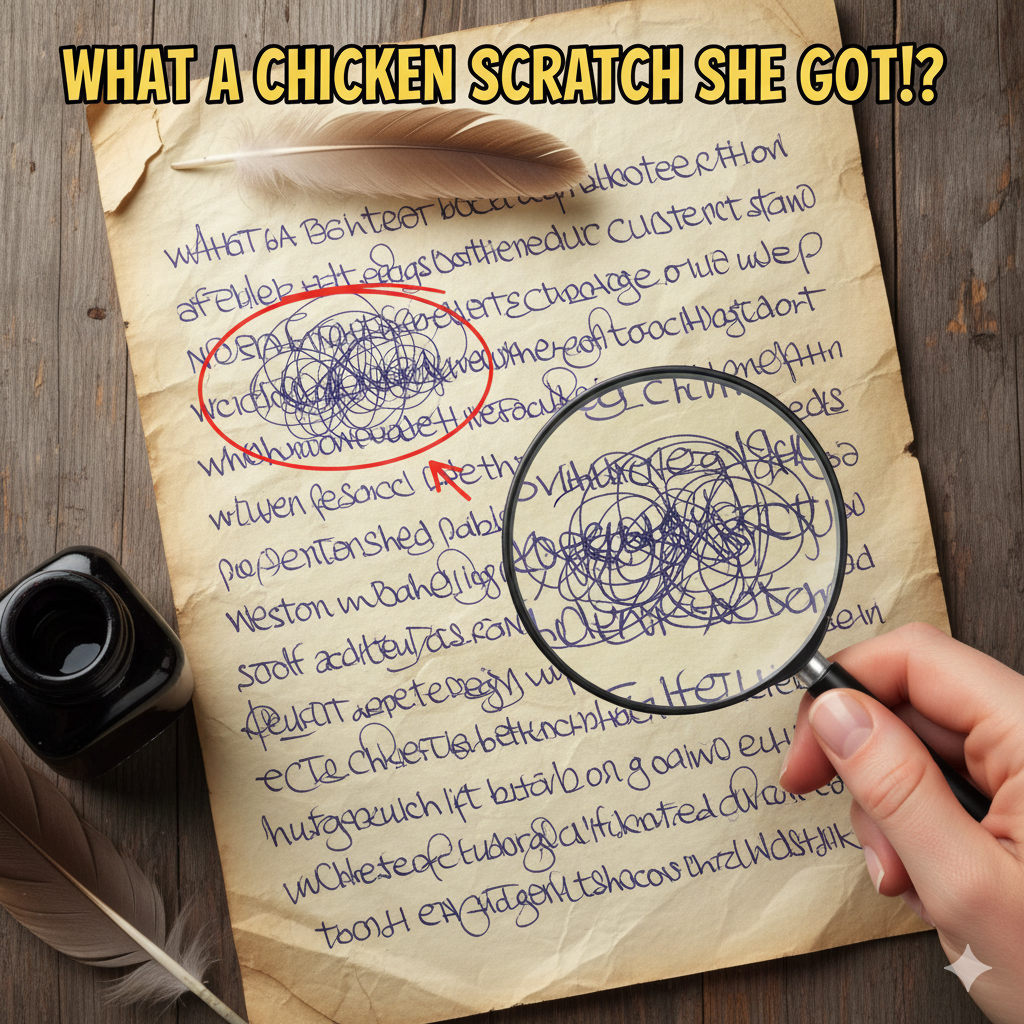 💬 Expression: “What a chicken scratch she got!”